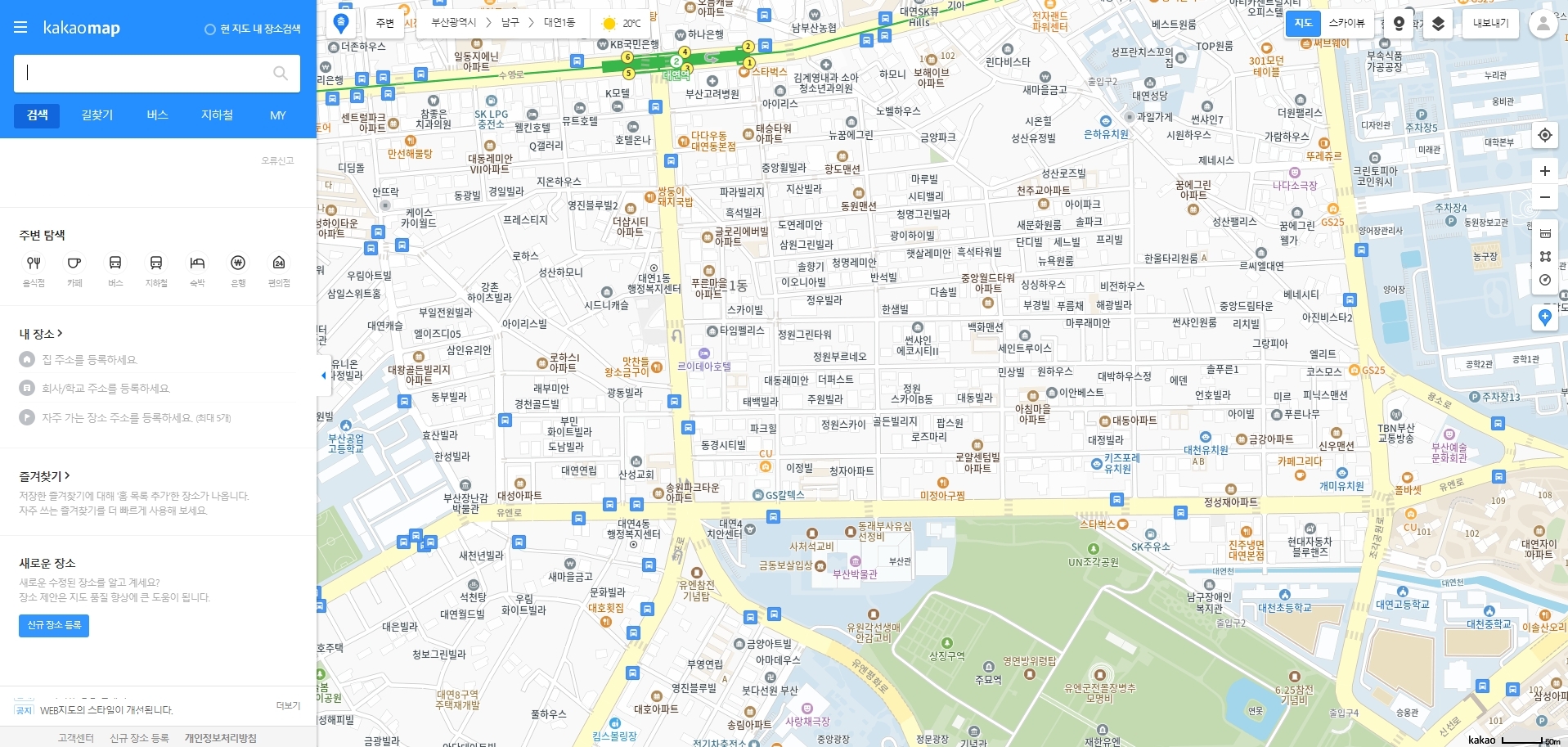카카오맵 홈페이지에 접속하여 카카오가 제공하는 다양한 지도 서비스를 이용할 수 있습니다. 여기서는 장소 검색, 길찾기, 실시간 교통, 지하철 노선, 거리재기, 즐겨찾기 폴더 등의 기능을 제공합니다.