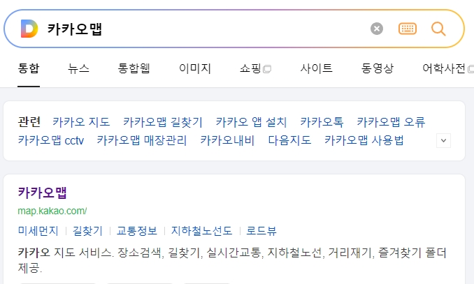 카카오맵 같은 지도 사이트 혹은 어플로 들어갑니다. 네이버지도, 구글지도 등 어떤 것을 사용해도 상관없습니다.