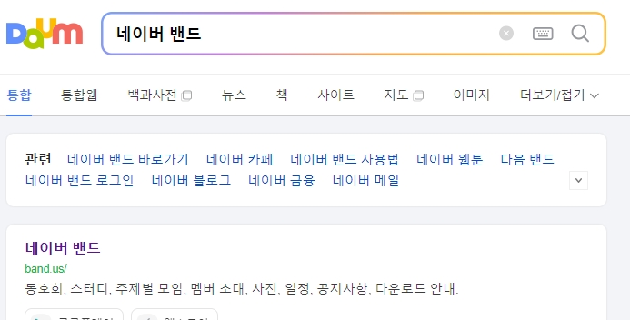 네이버 밴드를 검색해서 홈페이지로 들어갑니다. 동호회, 스터디, 주제별 모임, 멤버 초대, 사진, 일정, 공지사항, 다운로드 안내 등의 정보가 있습니다.