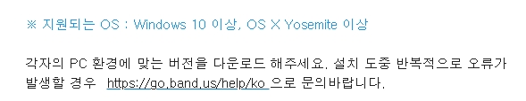 해당 공지사항을 참고하여 PC 버전 밴드를 다운로드합니다. 공지사항에서 제공하는 링크나 정보를 통해 다운로드 페이지로 이동합니다.