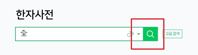 검색창에 입력된 한자를 그대로 두고 검색 버튼을 클릭합니다. 그러면 아까 그려서 선택한 한자를 검색할 수 있으며, 뜻이나 부수, 획수 등의 정보를 확인할 수 있습니다.