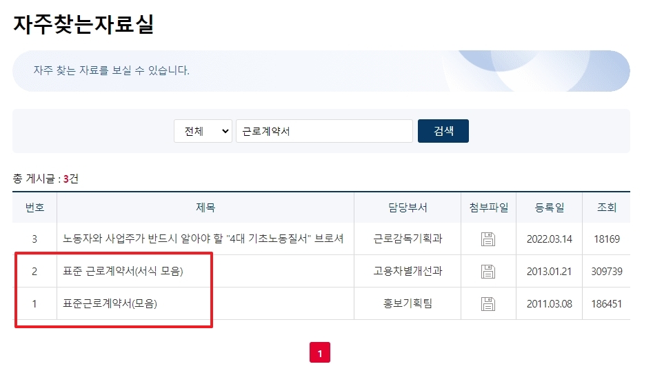 제공된 검색창에서 근로계약서를 검색하면 다양한 유형의 표준근로계약서 모음에 접근할 수 있습니다. 이 모음은 근로계약을 체결할 때 참조할 수 있는 기준 서식을 포함하고 있습니다.