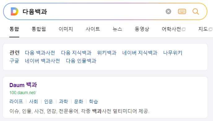 다음백과 홈페이지로 들어갑니다. 다양한 이슈와 인물, 사건, 전문용어 등을 제공하는 사이트입니다.