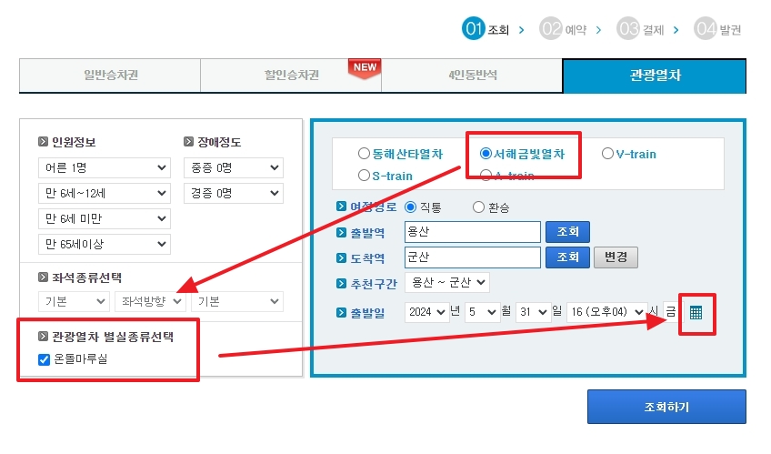 레츠코레일 홈페이지에서 서해금빛열차를 예약할 때, 온돌마루실을 체크해야 합니다. 예약이 어려우니, 표가 열리자마자 빠르게 예약을 시도해야 합니다. 온돌마루실은 특히 인기가 많아, 예약 시작과 동시에 빠르게 매진되는 경우가 많습니다.