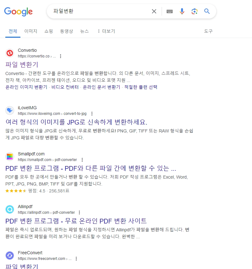 1. 구글에 접속하여 파일 변환을 검색하면 다양한 파일 변환 사이트들이 나타납니다. 어떤 사이트를 선택해도 무방합니다.