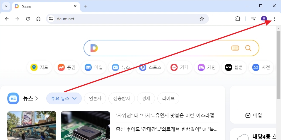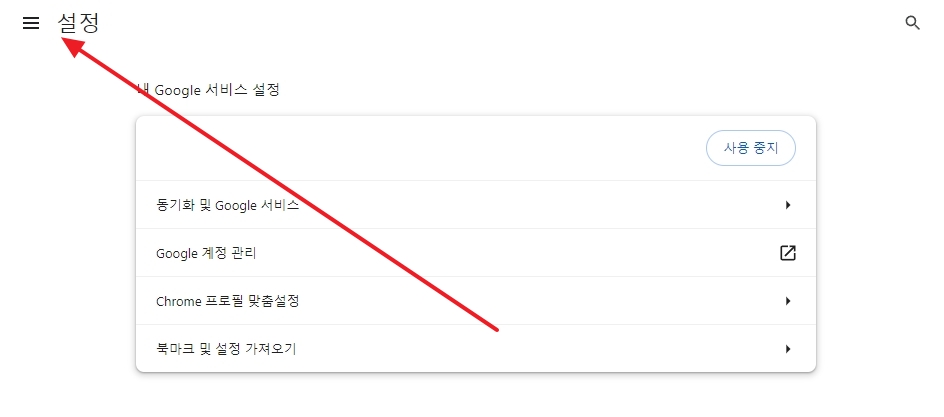 크롬 브라우저를 실행한 후, 우측 상단에 위치한 세 개의 점 모양 버튼을 클릭하여 메뉴창을 엽니다. 이 메뉴창에서는 다양한 옵션이 나열되어 있으며, 그 중에서 설정을 클릭합니다.
