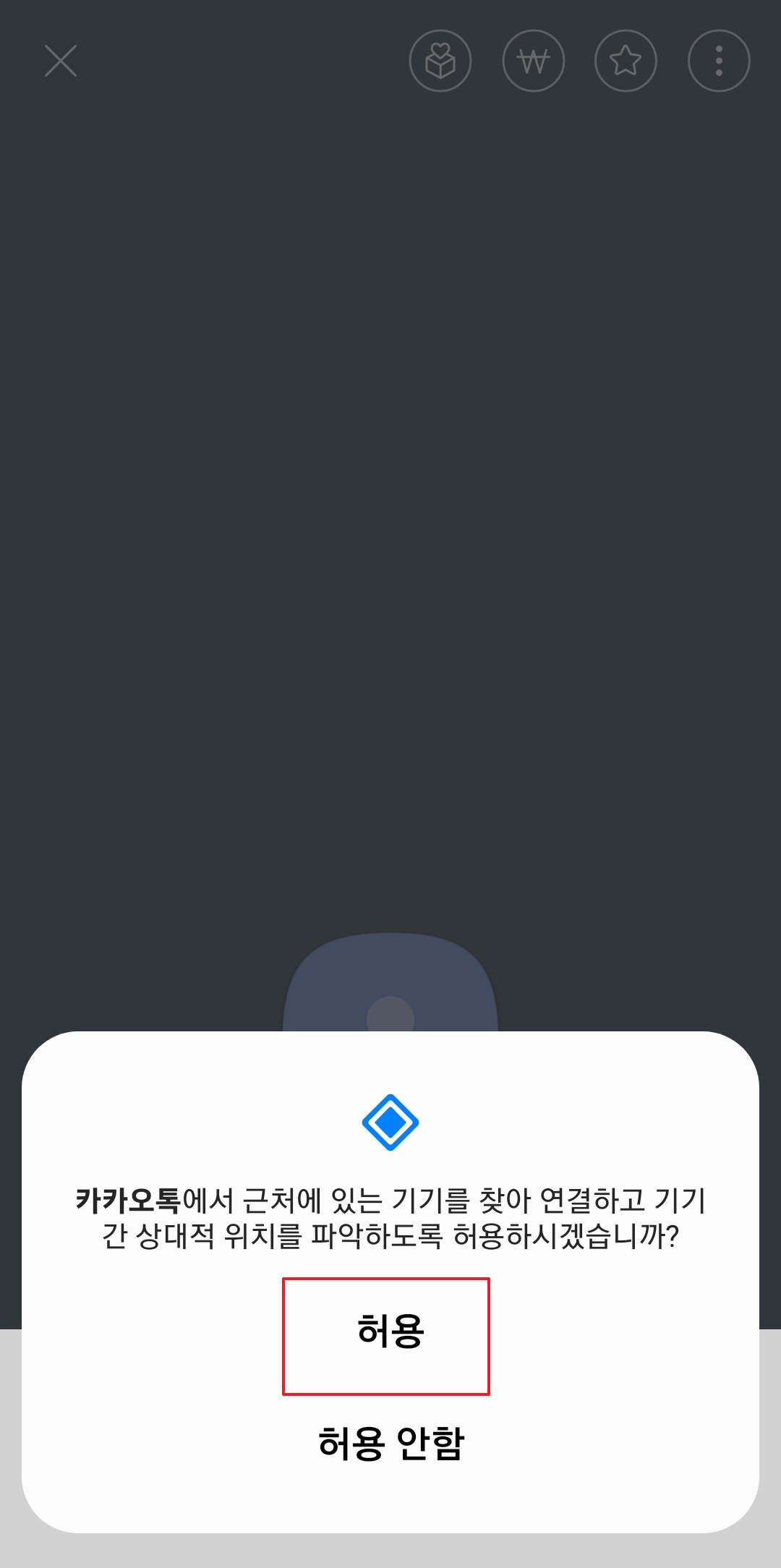 5. 보이스톡을 사용하기 위해서는 근처에 있는 기기를 찾아 연결하고 기기간 상대적 위치를 파악하는 것을 허용해야 해요. 저는 이 기능을 허용했어요.