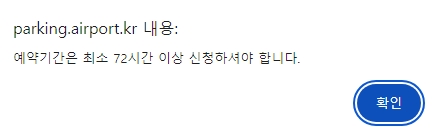 8. 하지만 주차장 예약은 72시간 이상이어야만 가능합니다. 나는 60시간 정도를 예약하려 했기 때문에 예약이 불가능했습니다. 예약 시스템이 즉시 예약 불가능을 표시하지 않는 것이 불편할 수 있지만, 72시간 이상만 예약 가능하다는 점을 미리 알면 계획을 세우는 데 도움이 됩니다. 이를 통해 예약 가능 시간을 충족시키기 위해 일정을 조정할 수 있습니다.
