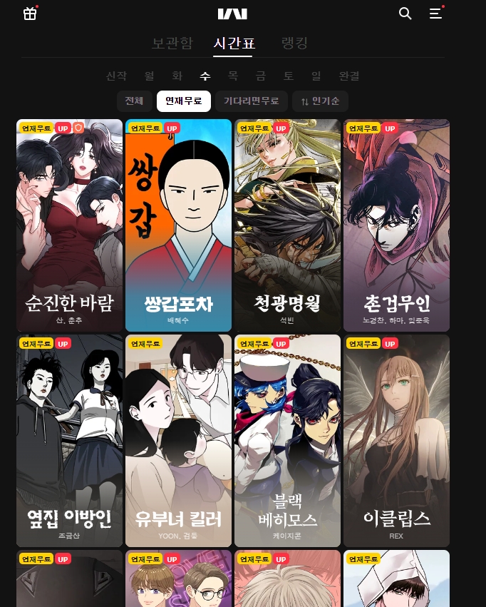 1. 요즘 카카오웹툰으로 들어가고 있어요. 다음이 카카오로 변경되면서 웹툰도 자연스럽게 바뀌었어요.