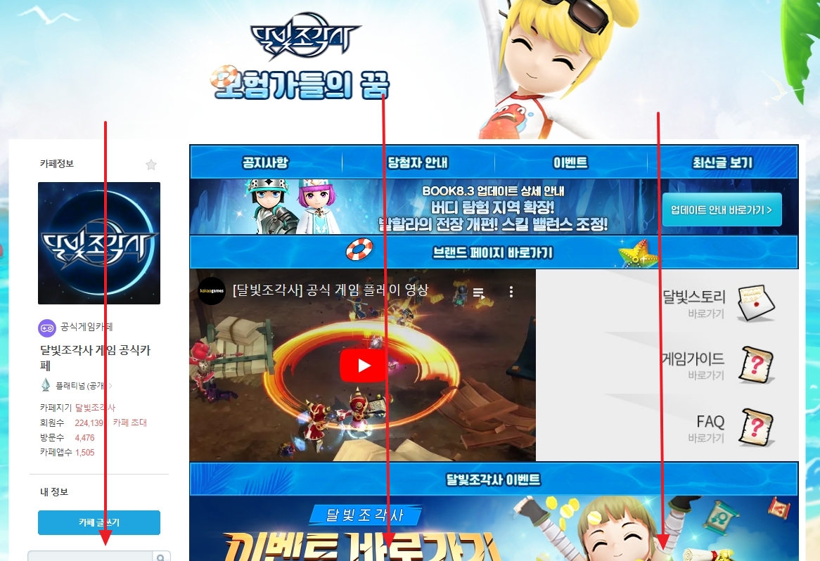 1. 다음 메인화면에서 카페를 클릭합니다. 이곳은 다음에서 운영하는 다양한 카페를 관리하고 참여할 수 있는 곳입니다.