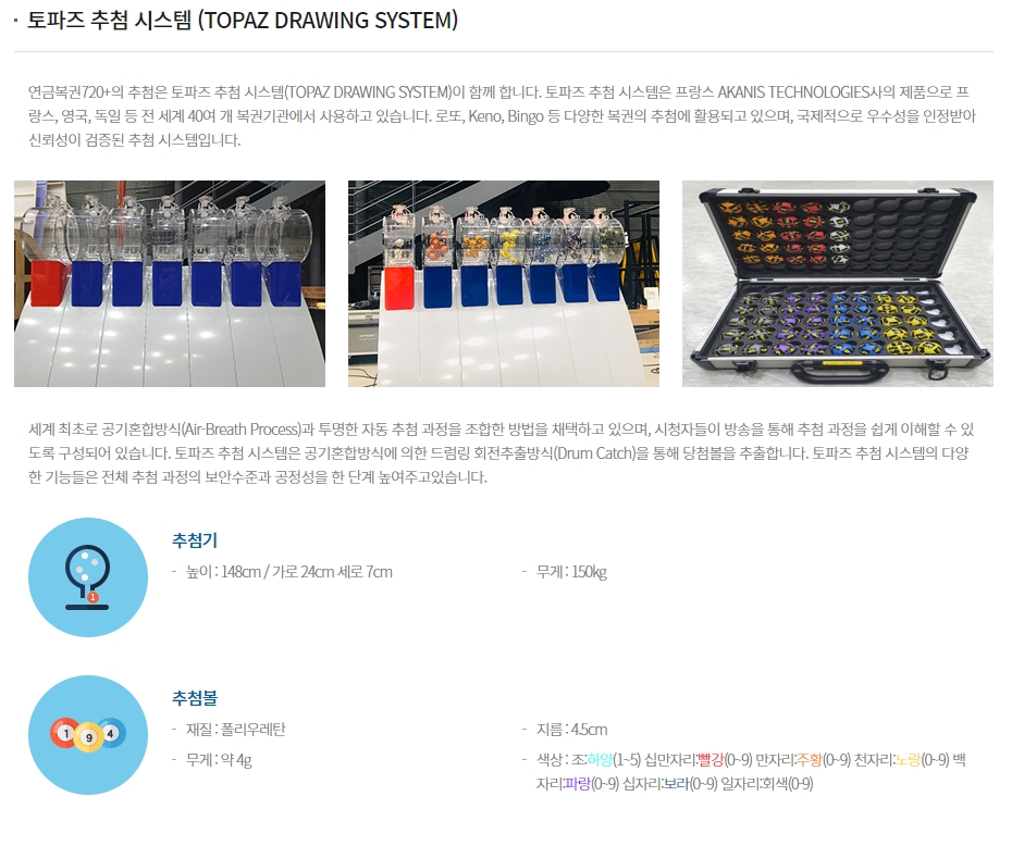 9. 많은 사람들이 연금복권 추첨기를 보지 못했을 가능성이 있습니다. 추첨기와 공은 모든 공이 공평하게 뽑힐 수 있도록 세팅되어 있으며, 조단위의 색상 구분도 흥미롭습니다.
