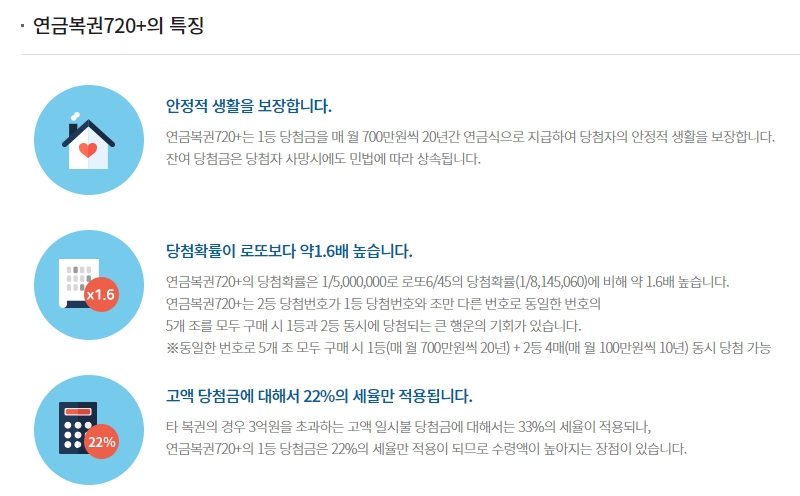 3. 연금복권의 당첨 확률은 로또보다 약 1.6배 높다고 알려져 있지만, 당첨금과 화폐 가치의 변화를 고려하면 로또와 비슷한 수준으로 볼 수 있습니다. 또한, 연금복권은 고액 당첨금에 대해 22%의 세금이 부과되는 장점이 있습니다.