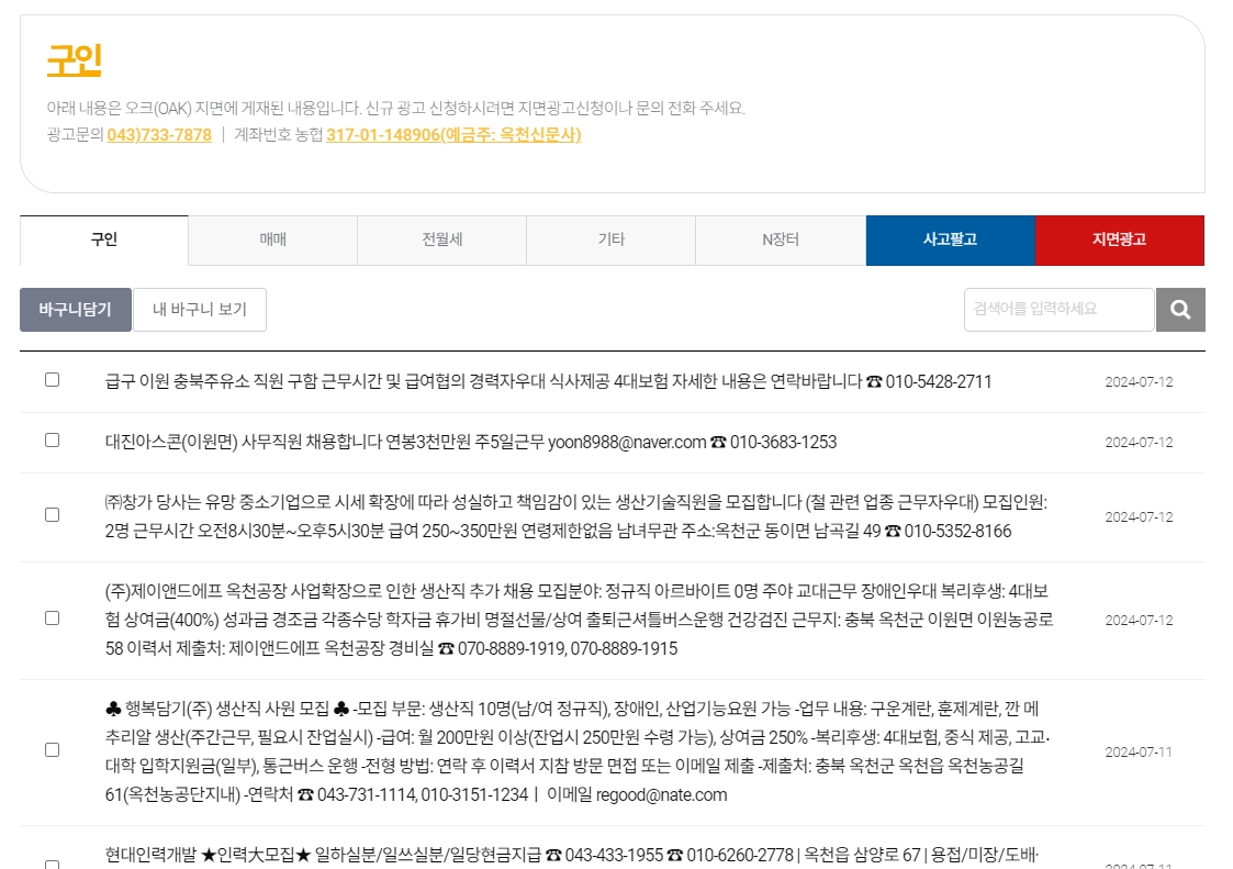 옥천신문 구인구직 홈페이지 바로가기