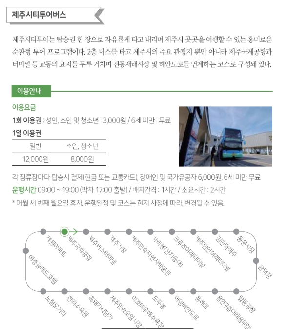 4. 제공되는 가이드북은 대중교통, 버킷리스트, 생활 속 제주 등 여행에 유용한 정보를 담고 있습니다.