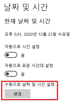 3. 자동으로 시간 설정이 꺼져 있다면, 수동으로 날짜 및 시간 설정 옵션이 활성화됩니다. 이 기능을 사용하면 사용자는 직접 날짜와 시간을 설정할 수 있습니다. 이는 인터넷 연결이 불안정하거나 특정한 이유로 자동 시간 조정이 필요 없는 경우에 유용합니다.