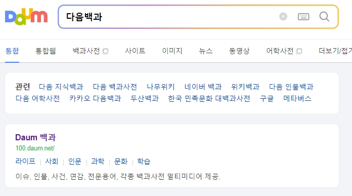 1. 다음백과 홈페이지에 접속합니다. 다음백과는 다양한 주제와 키워드에 대한 상세한 정보를 제공하는 백과사전 서비스입니다.