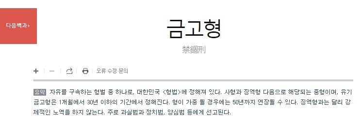 3. 다음백과의 설명에 따르면, 금고형은 자유를 구속하는 형벌 중 하나로, 대한민국 형법에 규정되어 있습니다. 사형, 징역형에 이어 중형에 해당되는 형벌입니다. 유기금고형의 경우 1개월부터 30년까지의 기간으로 정해지며, 특별한 경우에는 최대 50년까지 연장될 수 있습니다. 금고형을 받은 수형자는 강제적인 노역을 하지 않게 됩니다. 이 형벌은 주로 과실범, 정치범, 양심범 등에게 선고됩니다.