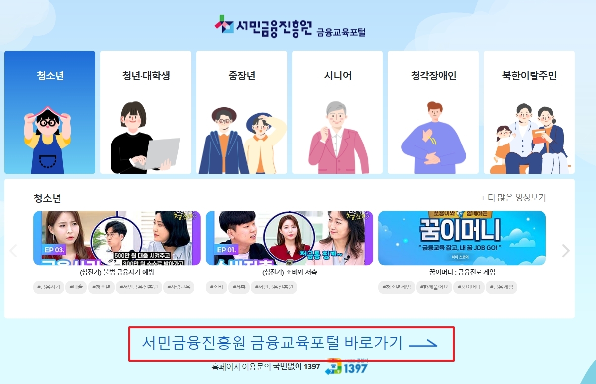 1. 먼저 서민금융진흥원 금융교육포털 홈페이지에 접속합니다. 이 사이트는 다양한 금융 교육을 제공하는 포털입니다.