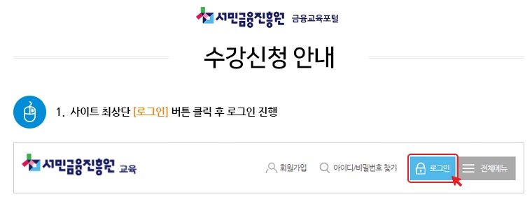4. 수강 신청을 위해서는 로그인이 필요합니다. 로그인하지 않은 상태에서는 교육을 신청할 수 없으므로 먼저 로그인합니다.