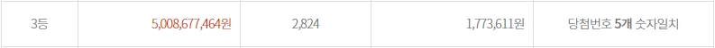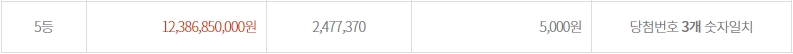 4. 먼저, 당첨번호 3개가 맞으면 5등에 해당되고, 당첨금은 5천원입니다. 이 금액은 고정되어 있어요.
