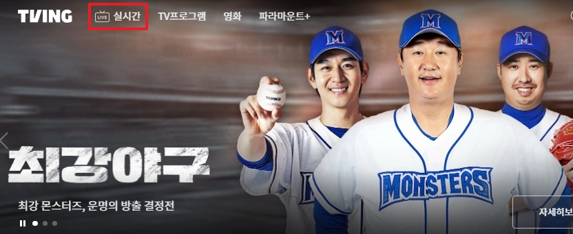 3. 실시간 TV를 보기 위해서는 티빙(TVING)으로 들어가야 합니다. 티빙은 다양한 채널을 실시간으로 시청할 수 있는 스트리밍 서비스입니다.