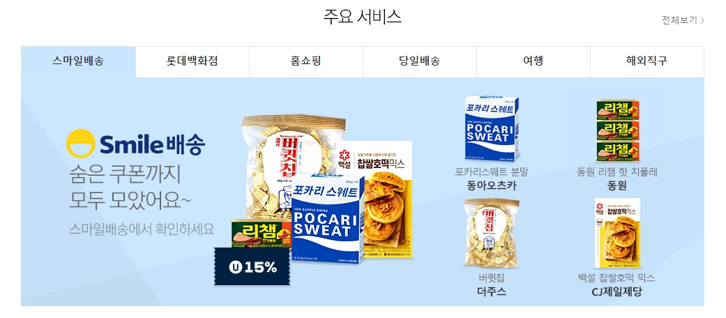 3. 주요 서비스로는 스마일배송, 롯데백화점, 홈쇼핑, 당일배송, 여행, 해외직구 등이 제공돼요. 스마일배송에서는 숨겨진 쿠폰까지 모아 할인된 가격으로 구매할 수 있는 기회를 제공하고 있어요. 또한, 다양한 브랜드 제품들을 저렴하게 구매할 수 있는 기회도 제공돼요.