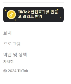 3. 틱톡 홈페이지 하단에는 회사 정보, 프로그램 안내, 약관 및 정책 등의 정보를 확인할 수 있습니다. 여기서는 틱톡의 공식 프로그램과 관련된 혜택을 받을 수 있는 이벤트 안내와 함께, 사용자들이 알아두어야 할 정책 및 약관이 명시되어 있습니다. 이 정보는 사용자가 플랫폼을 안전하고 효율적으로 사용할 수 있도록 도와줍니다.