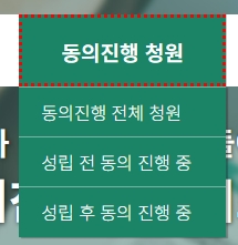 4. 동의진행 청원 메뉴에서는 현재 진행 중인 청원들을 확인할 수 있습니다. 동의진행 전체 청원, 성립 전 동의 진행 중, 성립 후 동의 진행 중으로 구분되어 있으며, 각 청원의 동의 기간과 동의 수를 실시간으로 확인할 수 있습니다. 사용자는 관심 있는 청원에 동의하고, 청원의 진행 상태를 지속적으로 모니터링할 수 있습니다.