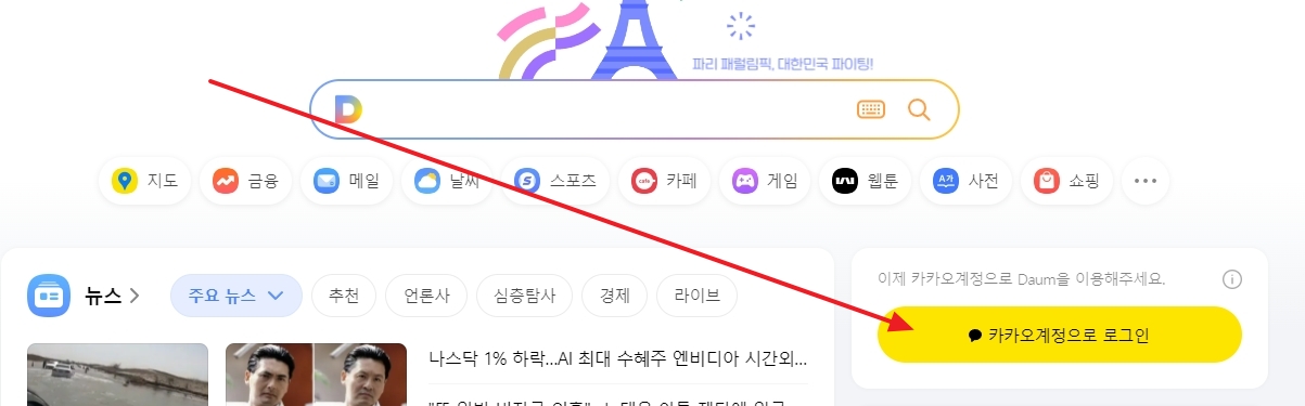 4. 다음 포털 메인 화면에서는 메일 메뉴가 상단에 위치해 있어 빠르게 접근할 수 있습니다. 이곳에서 바로 메일함으로 이동할 수 있으며, 메일 외에도 금융, 날씨, 스포츠 등 다양한 서비스도 쉽게 접근할 수 있어요.