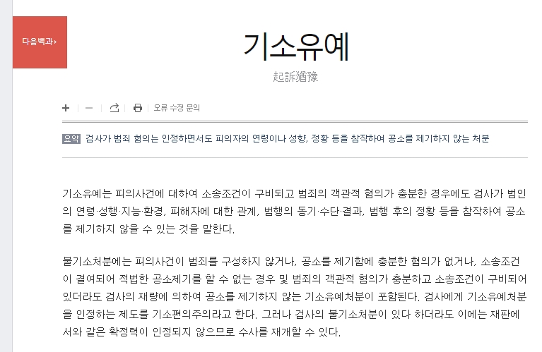 4. 다음백과에서는 기소유예를 검사가 범죄 혐의는 인정하지만, 피의자의 연령이나 성향, 상황 등을 고려해 공소를 제기하지 않는 처분이라고 설명하고 있습니다. 즉, 범죄 혐의가 인정되더라도 피의자의 상황을 고려해 기소를 하지 않기로 결정하는 것입니다.