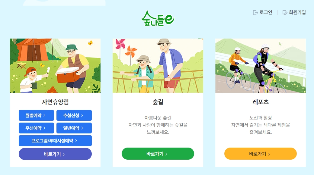 자연휴양림 예약정보시스템 홈페이지 바로가기