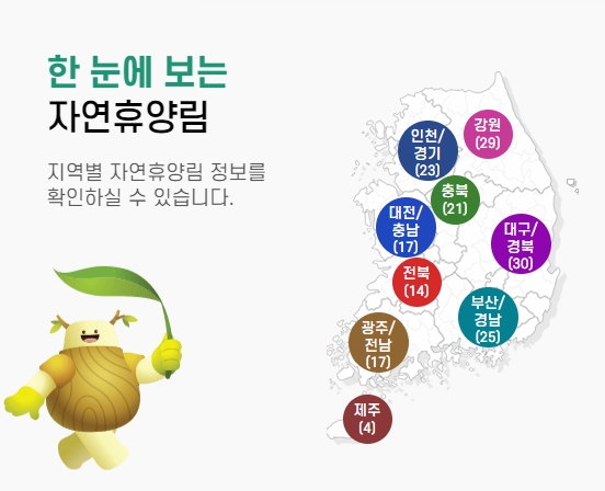 6. 또한 지역별로 분포된 자연휴양림 정보도 지도로 제공되어, 자신이 거주하는 지역 또는 가고 싶은 지역의 휴양림을 쉽게 검색할 수 있습니다. 인천, 경기, 충북, 전북, 대구, 경북 등 전국 각지의 휴양림이 상세하게 나열되어 있어, 자연 속에서 여유로운 시간을 보내고 싶은 사람들에게 매우 유용한 정보입니다.