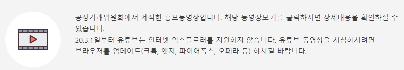 3. 신고방법 안내 페이지에서는 홍보 동영상을 통해 공정거래위원회에 신고하는 절차를 쉽게 설명합니다. 이 동영상을 보면 신고할 때 필요한 서류, 절차, 그리고 어떤 상황에서 신고를 해야 하는지 알 수 있어 매우 유용합니다. 이 동영상을 시청하면 공정거래와 관련된 문제를 보다 효율적으로 해결할 수 있는 방법을 알게 됩니다.