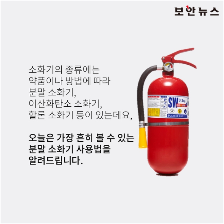 2. 소화기의 종류에는 분말 소화기, 이산화탄소 소화기, 할론 소화기 등이 있으며, 주로 가정과 상업용으로 많이 사용되는 것은 분말 소화기입니다. 오늘은 이 분말 소화기의 사용법에 대해 살펴봅니다.