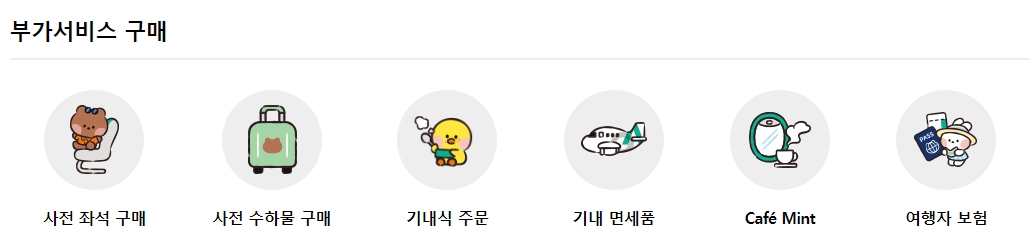 7. 부가 서비스에서는 좌석과 수하물 구매, 기내식 주문까지 간편하게 이용할 수 있어요. 또한, 기내 면세품과 카페 Mint 서비스도 마련되어 있어서 비행 중 즐길 수 있는 옵션이 많답니다. 미리 준비해 두면 안전한 여행을 할 수 있어요.