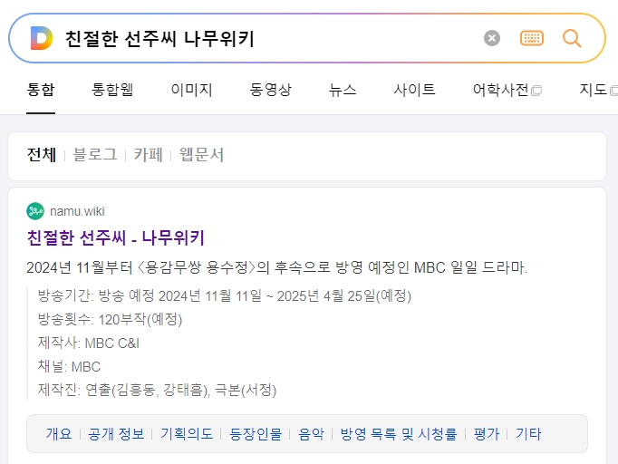 1. 친절한 선주씨 나무위키 페이지에 접속하면, 드라마에 대한 간략한 정보를 손쉽게 확인할 수 있어요. 방영 시기는 아직 예정이지만, 현재로선 거의 확정이라고 볼 수 있어요.