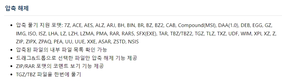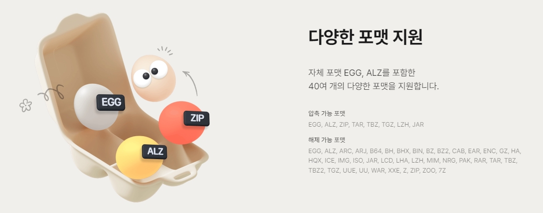 4. 알집은 다양한 압축 포맷을 지원합니다. 대표적으로 egg, zip, alz 포맷을 지원하며, 다양한 파일 형식을 다룰 수 있는 유용한 도구입니다.