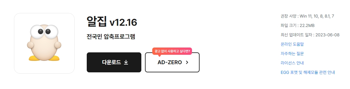 알집은 특히 한국에서 많이 사용되는 것 중 하나로, 한때는 모든 컴퓨터에 전부 설치가 되어 있었다고 해도 과언이 아닐 정도였습니다만 지금은 여러가지를 다양하게 사용하고 있는 것 같습니다.