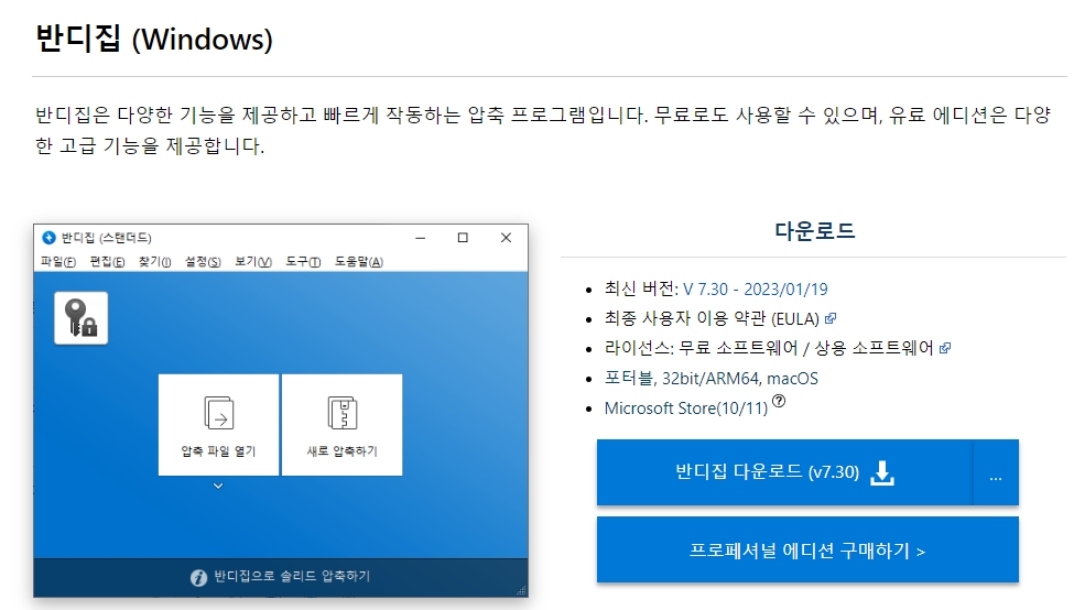 5. 두번째로 반디집 홈페이지로 들어갑니다. 반디집도 마찬가지로 매우 직관적이고 사용하기 쉬운 인터페이스를 제공하는 인기 압축 프로그램입니다.