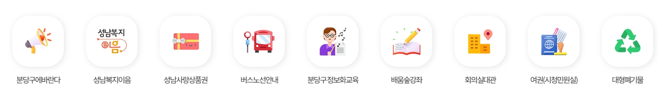 6. 분당구에서는 회의실과 대관 서비스를 제공하며, 주민들과 단체들이 다양한 모임과 행사를 개최할 수 있도록 지원합니다. 예약 절차와 이용 규정은 홈페이지에서 확인할 수 있습니다.