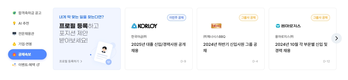 6. 공채 속보는 빠르게 변동하는 채용 공고를 실시간으로 알려주며, 프로필 등록을 통해 맞춤형 채용 제안을 받을 수도 있습니다. 공채 시즌을 놓치지 않고 기회를 잡을 수 있는 알림 서비스가 지원됩니다.