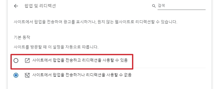 6. 허용으로 설정하면 해당 브라우저에서 모든 팝업이 차단 없이 표시됩니다. 단, 보안에 주의해야 하니 신뢰할 수 있는 사이트에서만 사용하도록 하세요.