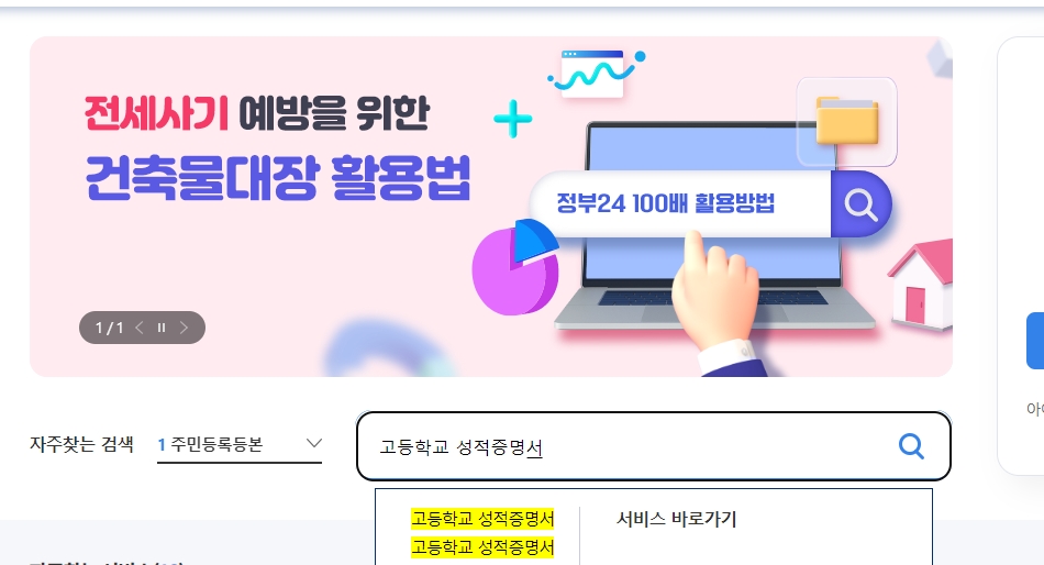 2. 검색창에 고등학교 성적증명서를 입력하고, 관련 서비스를 찾으면 쉽게 접근할 수 있습니다.