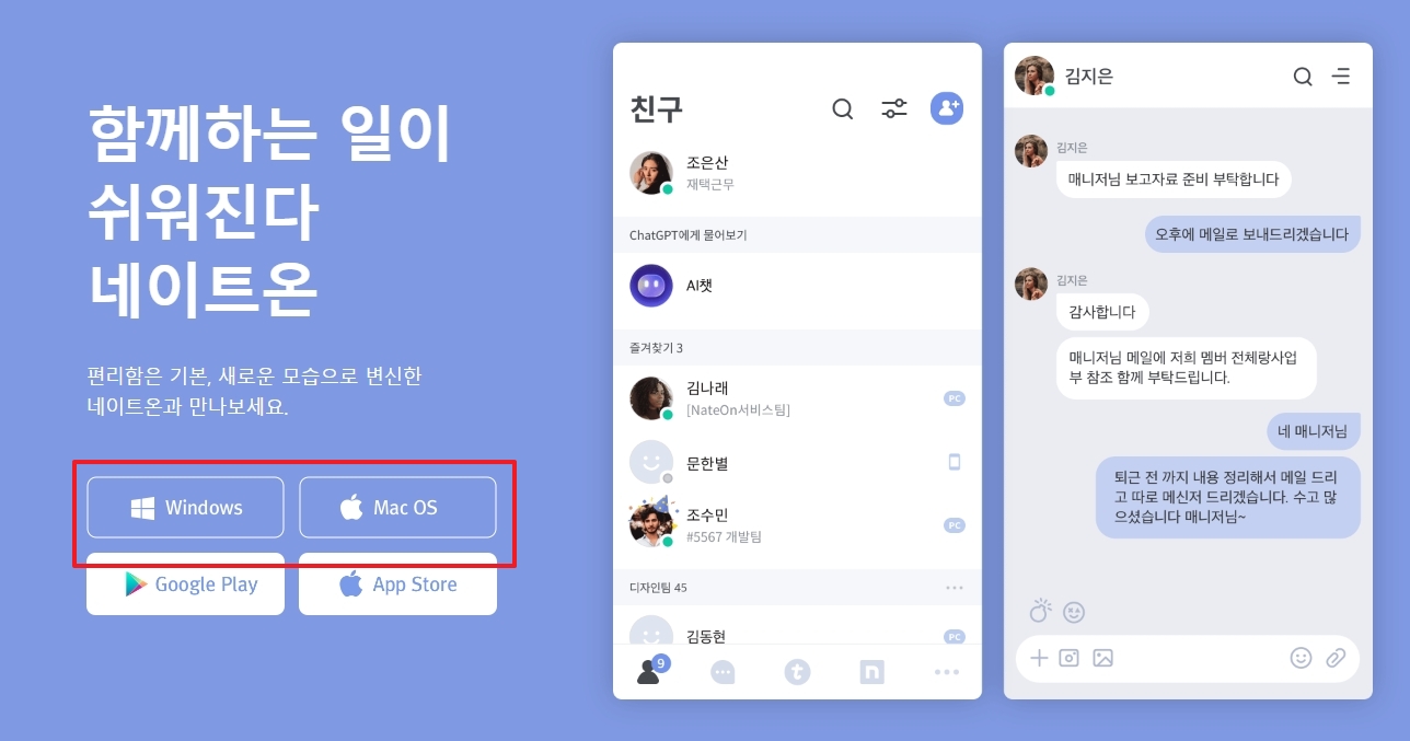 그리고 참고로, 안드로이드 휴대폰은 구글 플레이, 아이폰은 앱스토어에서 해당 버전을 다운로드 받을 수 있다는 점도 알아두면 좋습니다. 이처럼 각 플랫폼에 맞춰 다양한 버전을 제공하고 있다는 것이 네이트온의 강점 중 하나입니다.
