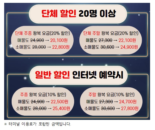 5. 매물도와 소매물도 배편을 이용할 때 제공되는 할인 정보도 매우 유용합니다. 20명 이상의 단체 예약을 할 경우 왕복 요금에서 20% 할인을 받을 수 있으며, 인터넷을 통해 사전 예약을 하면 10%의 할인이 추가로 제공됩니다. 매물도와 소매물도 모두 할인 혜택을 받을 수 있으며, 이러한 정보는 많은 인원이 함께 여행할 때 큰 도움이 될 수 있습니다. 단체로 여행을 계획하는 분들이나 인터넷으로 미리 예약하는 경우, 이런 할인을 통해 여행 경비를 절감할 수 있다는 점이 매력적입니다.