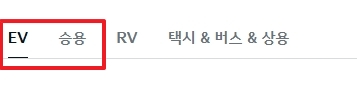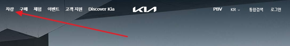 2. 상단의 메뉴에서 ‘차량’을 클릭한 뒤, 페이지가 이동하면 상단 메뉴에서 EV와 승용을 확인할 수 있습니다. 승용 카테고리에서 기아의 다양한 승용차 모델들을 확인할 수 있습니다.