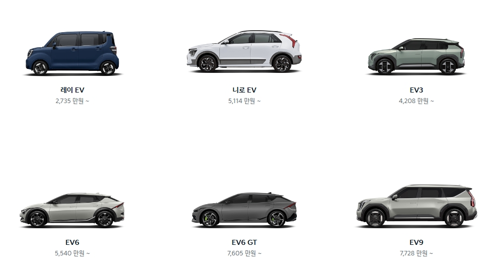 3. 승용차 라인업에는 모닝, 레이, K5, K8, K9 등이 포함됩니다. 모닝은 1,325만 원부터 시작하며 경제적인 소형차로 도심 주행에 적합한 모델입니다. 레이는 1,340만 원부터 시작하며, 도시 생활에 최적화된 컴팩트한 디자인을 갖춘 경차입니다.