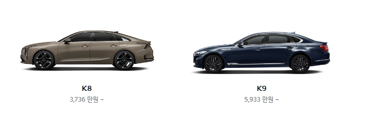 5. K8은 3,736만 원부터 시작하며, 고급스러운 디자인과 편안한 승차감을 자랑하는 준대형 세단입니다. 넓은 실내 공간과 여러 첨단 기능이 탑재되어 있어, 가족용 또는 비즈니스 용도로 적합합니다.