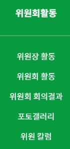 3. 위원회 활동 섹션에서는 위원장 및 위원회의 주요 활동을 자세히 소개합니다. 회의 결과 보고서와 함께 포토갤러리와 위원 칼럼을 통해 위원회의 진행 상황과 관련 자료를 확인할 수 있습니다.