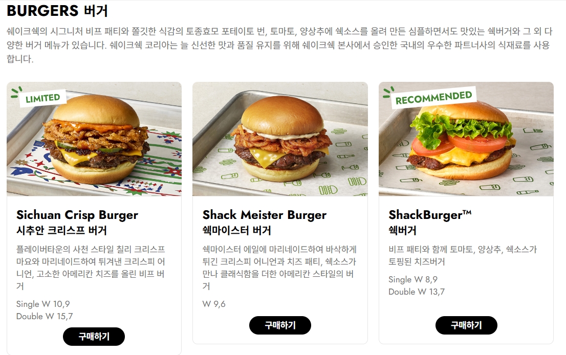 쉑쉑버거의 매력은 단순히 버거의 맛뿐만 아니라, 재료의 신선함과 깔끔한 맛 조합이에요. 가격대는 다른 버거 브랜드에 비해 조금 높은 편이지만, 한 번 먹어보면 그 값어치를 충분히 느낄 수 있을 거예요. 기본 메뉴부터 사이드, 쉐이크까지 조화롭게 즐기면 쉑쉑버거의 진정한 매력을 경험할 수 있을 겁니다!